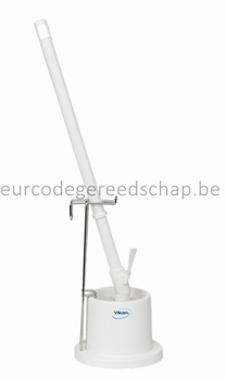 Met lange ergonomische steel, en met wit kunststof houder, waarin de borstel komt te hangen. Muurbevestiging is hier alsook voorzien.